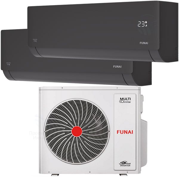 Базируясь на двадцатилетнем опыте, заранее подобрали для вас уже готовый комплект: один наружный и два внутренних блока Funai. Внутренние блоки - это классические настенные кондиционеры RAM-I-SNN30HP, которые рассчитаны на охлаждение комнаты в 30 м², что удовлетворяет подавляющему большинству жилых комнат.