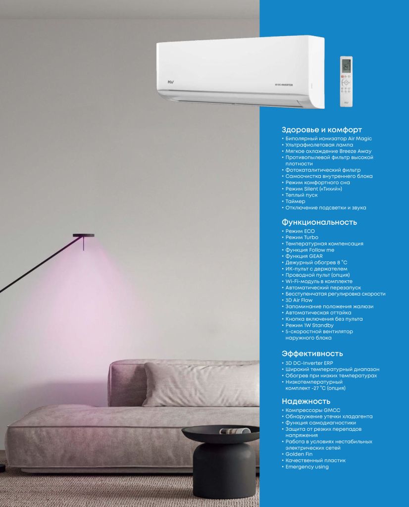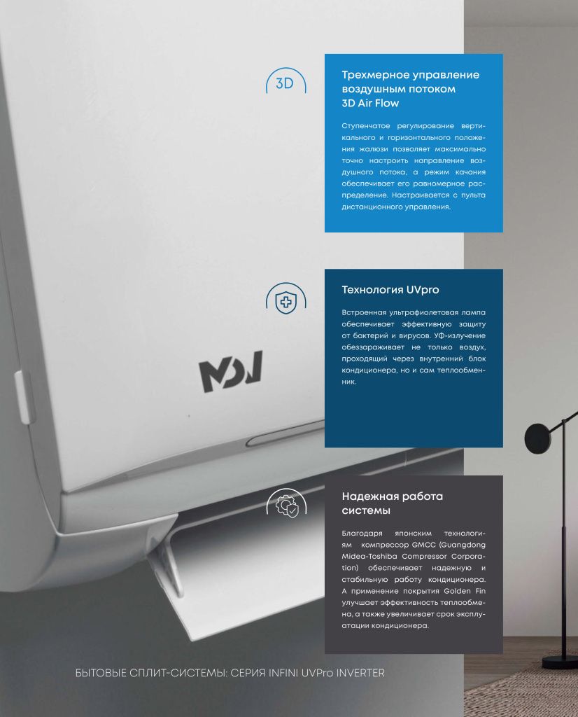 Выбирая мульти сплит систему MDV, вы выбираете комфорт, надежность и экономичность. Создайте свой идеальный микроклимат с помощью передовых технологий MDV!