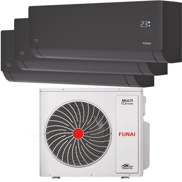 Базируясь на двадцатилетнем опыте, заранее подобрали для вас уже готовый комплект: один наружный и три внутренних блока Funai. Внутренние блоки - это классические настенные кондиционеры RAM-I-SNN30HP, которые рассчитаны на охлаждение комнаты в 25 м², что удовлетворяет большинству жилых комнат.