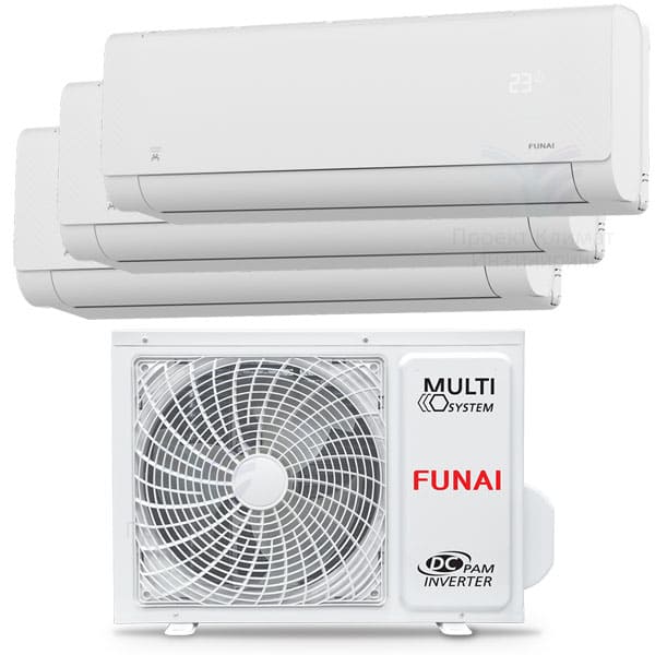 За все функции кондиционера отвечает именно внутренний блок. На внешнем блоке - чисто технические задачи по раздаче фреона до каждого внутреннего и задачи по отведению тепла. Ниже представили часть основных особенностей настенных кондиционеров Funai серии Shogun: