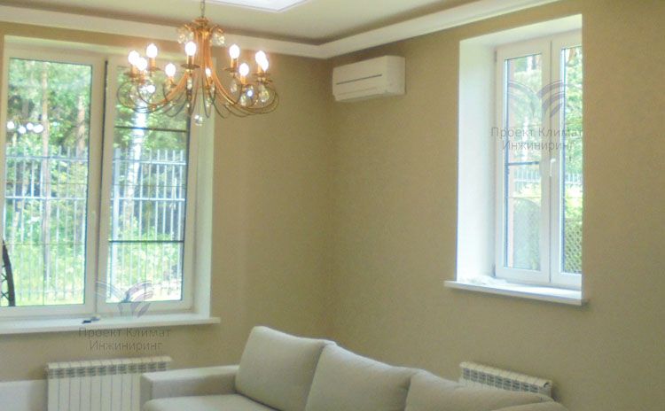 Мощности системы хватает для эффективной работы с суммарной охлаждаемой площадью до 60 м². А общая площадь, допустим, загородного дома или многокомнатной квартиры, может составлять 90-110 м².
